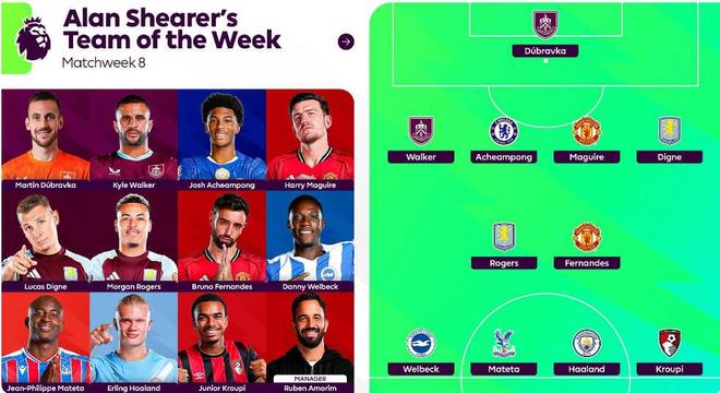 希勒评英超第8轮最佳阵:哈兰德&B费&马奎尔在列,教练阿莫林